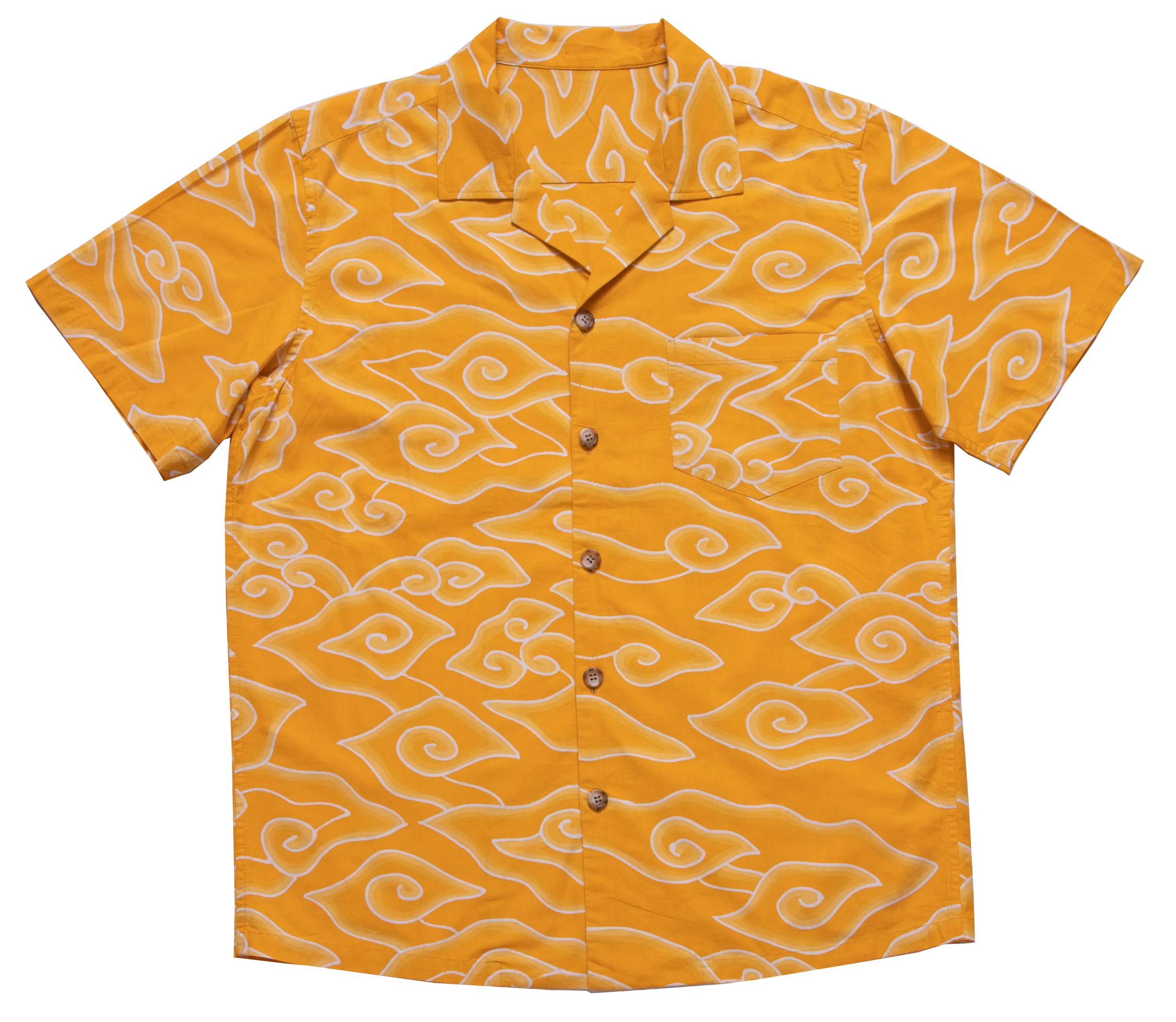 19世紀から20世紀にかけて、ハワイへ渡った日本移民はシュガープラント・農業に従事していました。 彼らは作業服としてパラカシャツ(ヨーロッパの船員たちが着ていたとされる開襟シャツ)を日本の木綿絣に似ていたところから愛用していました。 そして、持ってきた着物や浴衣が古くなるとその端切れで子供のパラカ風シャツを仕立てて着せていました。 これがアロハシャツの起源だと言われています。